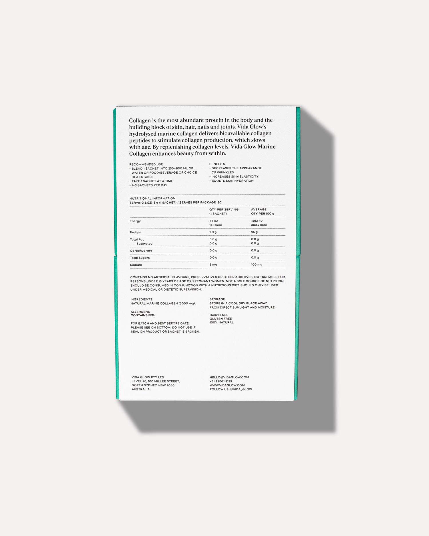 ✅ Easy to incorporate into your daily routine. Vida Glow Natural Marine collagen sachets are flavourless and versatile, easily blending into your favourite foods and drinks. Whether mixed into your morning smoothie, coffee, or even water, adding collagen to your diet has never been easier.